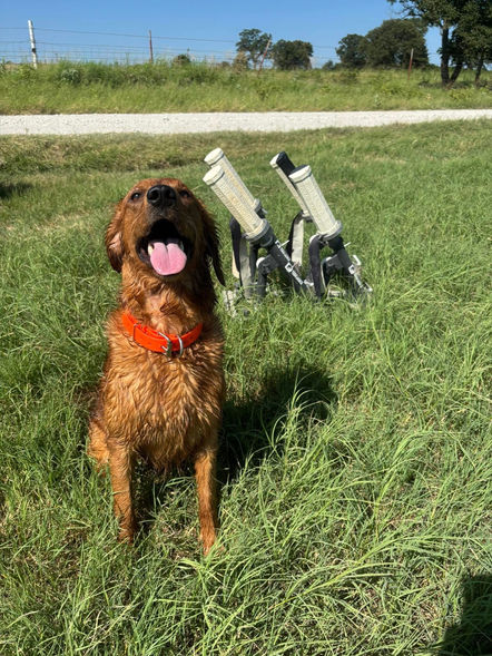 Vici is out of Crue's first litter and is co-owned with Laura's sister Sarah. Vici is in training with Joel Moore for her seasoned (HR) title currently. She is on the smaller side, 45-50 lbs, and is a speed demon! Super smart, 100 MPH in the field, and an excellent off-switch in the house.